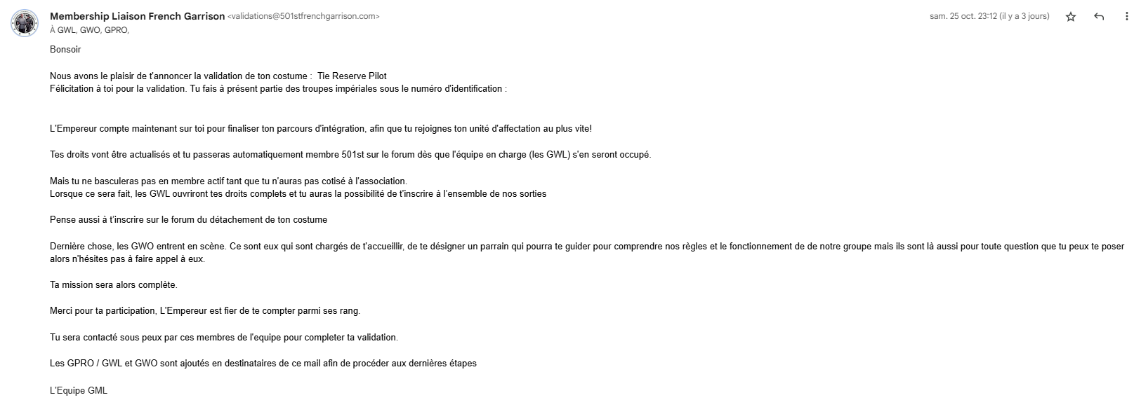 Contact : tresorier@501stfrenchgarrison.com